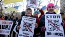 Антивакцинатори вийшли на акцію протесту в Києві з QR-кодами "Єдиної Росії"