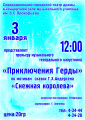 03 января – музыкальный театральный капустник «Приключения Герды» по мотивам сказки Г.Х. Андерсена «Снежная королева». Режиссер-постановщик Наталья Карчкова.